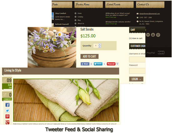 - Widgets for Twitter feed & Social sharings