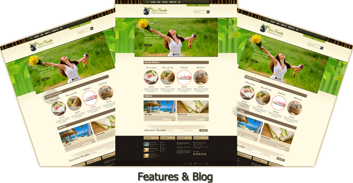 - Home page with large slider, featured products and latest news