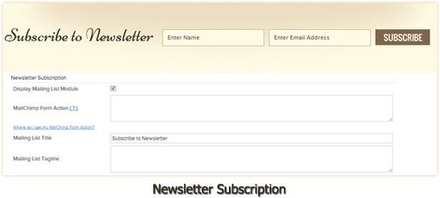 - Newsletter signup form with mailchimp support